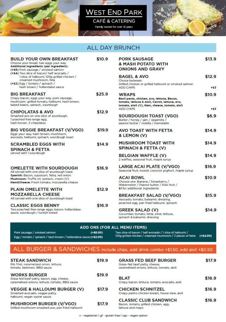 We offer an extensive breakfast and lunch menu served in a relaxed environment.